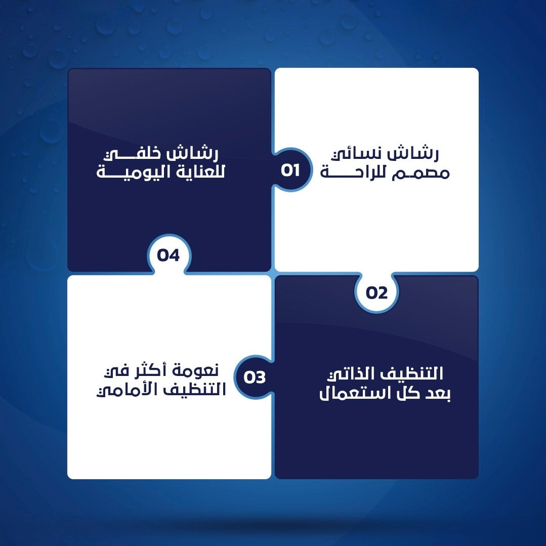 يمنحك ™O1 خيارين للتنظيف: رشاش خلفي للعناية اليومية، ورشاش نسائي مصمم لراحة ونعومة أكثر في التنظيف الأمامي.